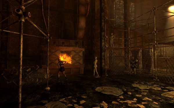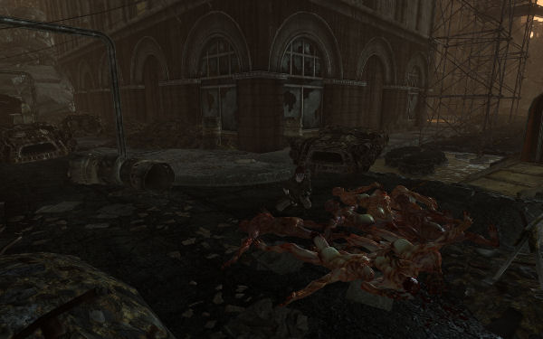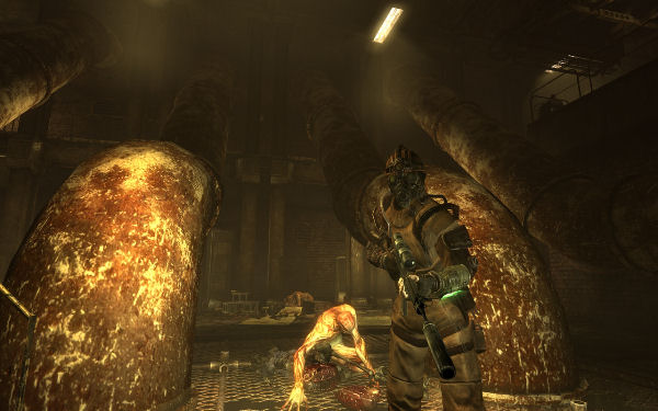 Also unlike its DLC predecessor, The Pitt is a well-balanced offering of action, exploration, and interaction. There’s a large, open ‘dungeon’ level spanning above-ground steelyards and indoor factory rubble with stuff hidden just plain everywhere, and much of the exploration of said area is entirely up to you. For its size, The Pitt has a good number of named and unique NPCs, many of which do have some complex and interesting interaction possibilities with the PC. Even at the climax of The Pitt’s quest plot when everything goes to hell, there’s as much interaction as run-and-gun.