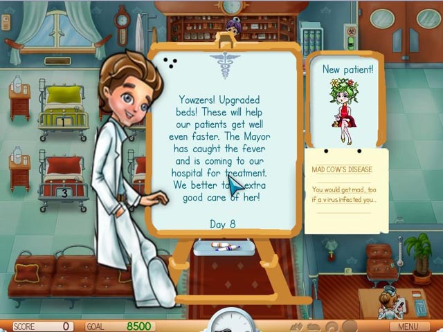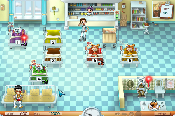 Fever Frenzy lets you play as a male or female doctor, healing patients back to health. The game takes place in four different hospitals, and the patient healing process is fairly simple: place them in the diagnosis chair, wait for them to change into their pajamas, place them in bed, bring their medicine when needed, check them out and make the bed.
