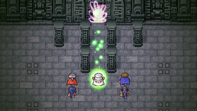 The battle system is also different from that of Final Fantasy. The first change is the introduction of a second row for both your party and monsters. Those in the back row become protected from physical attacks by the front row, but can still be hit by magic and ranged attacks. Defeating all of the front row monsters brings those in the back forward, which gives the fights a little more of a strategic element, since you will want to adjust your party’s formation and pick certain ways to attack.