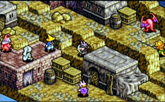 I have to start out by saying I hardly looked at the manual before playing the game, and initially it was a little cryptic and weird. Your game starts out in the town of Ivalice, your main character being a boy named Marche who is the new kid in town. He makes friends with spunky Ritz, kind of a tomboy-ish strong-willed girl, and Mewt, a quiet boy who is bossed around by his classmates. There is a snowball throwing match between Marche, Ritz, Mewt, and the bullies, which is a nice introduction to the mechanics of the game (though you don’t necessarily know that yet). The three make a likely group and get together after school one day to check out Mewt’s cool new book, aptly entitled “Final Fantasy.” However this is no ordinary book, and Marche wakes up in an entirely different world (called “Ivalice” of course) with strange creatures, and his friends nowhere to be seen. Marche befriends a Moogle named Montblanc, and his adventures begin as a clan leader for missions to undertake to gain money and items for your clan members.