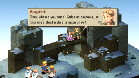 Now this all time favorite of mine has been released to the PSP. I remember when I didn’t feel the need to buy re-releases, but now I do. Of course I had to have this game as well, even though I have the original. For starters, the translation is a lot better. True, characters speak as in Shakespearian times (or just as they did in FFXII) and that can be hard enough sometimes. But it sets the mood and characters express themselves so much better in this version.