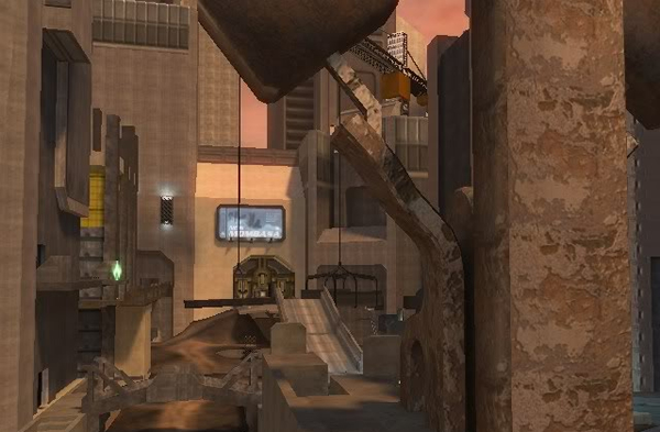- Sanctuary – A two-story tower in the center, with multiple bridges radiating from it, connecting it to a series of platforms and raised walkways. Twin bases face each other at either side of the map, each with a central stairway and side entrances, and equipped with turrets and Sniper Rifles.