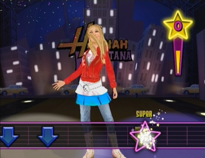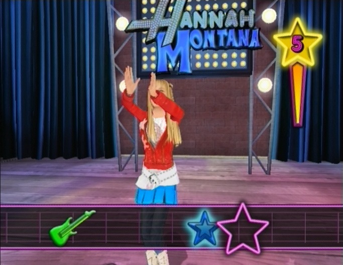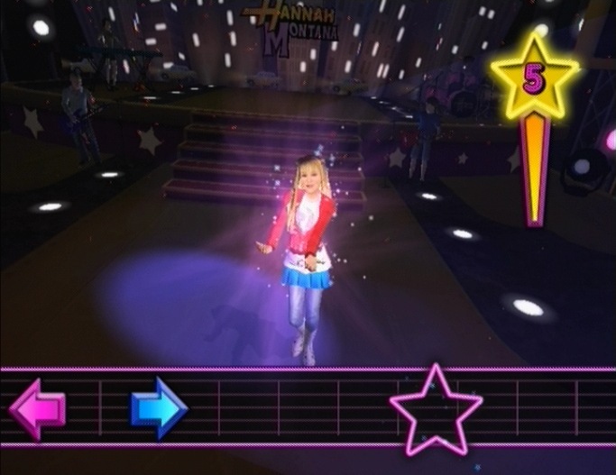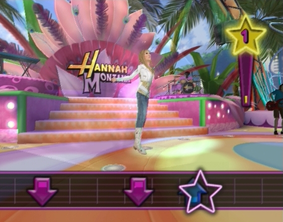 Hannah’s movements are controlled by the Wii-mote (right hand) and Nunchuk (left hand). The basics of the game are like in Dancing With the Stars: there is a bar at the bottom of the screen where the symbols will appear, and you must do the right move when the symbol hits the star.