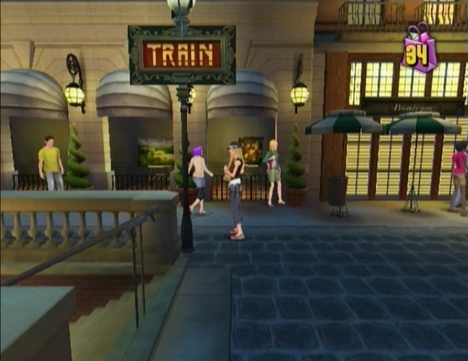 Shopping is actually interesting – and you will never hear me say that again! It takes you through typical places in the different cities: a big mall in New York City, a picturesque French neighborhood with cafes and lots of small boutiques, a London corner with little stores and booths. It’s worth walking around just to see how the environments are. The actual shopping is done in a way that lets you roam around freely, try on whatever you want and buy something by using one of the tokens. There is everything from hats, sunglasses, hairbands, tops, pants, shoes, boots, skirts, belts and jewelry. The fashion style also differs from city to city. Items you have purchased will appear in Hannah’s dressing room, so you can change her look to your liking before a performance.