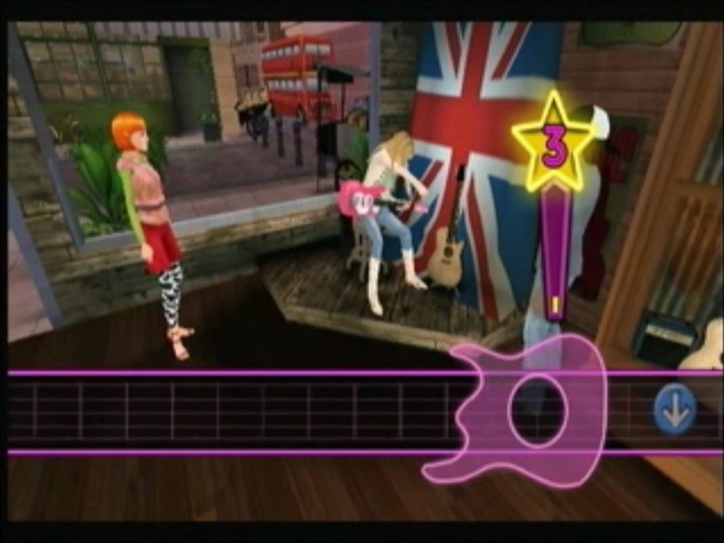 In Hannah Montana: Spotlight World Tour for the Wii you play as Hannah on a tour of some major cities around the world, including Rome, Tokyo, London, Paris and New York. You have a concert to perform in each of them, and you do that by perfecting certain moves. Before each event, you practice those moves, and from concert to concert, you learn new ones.