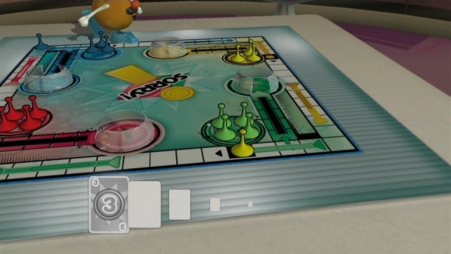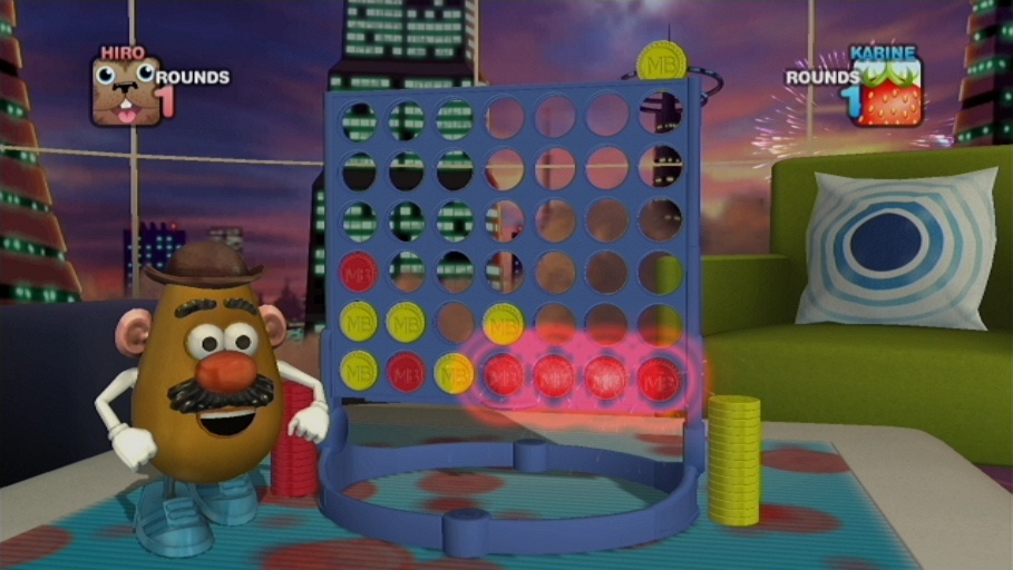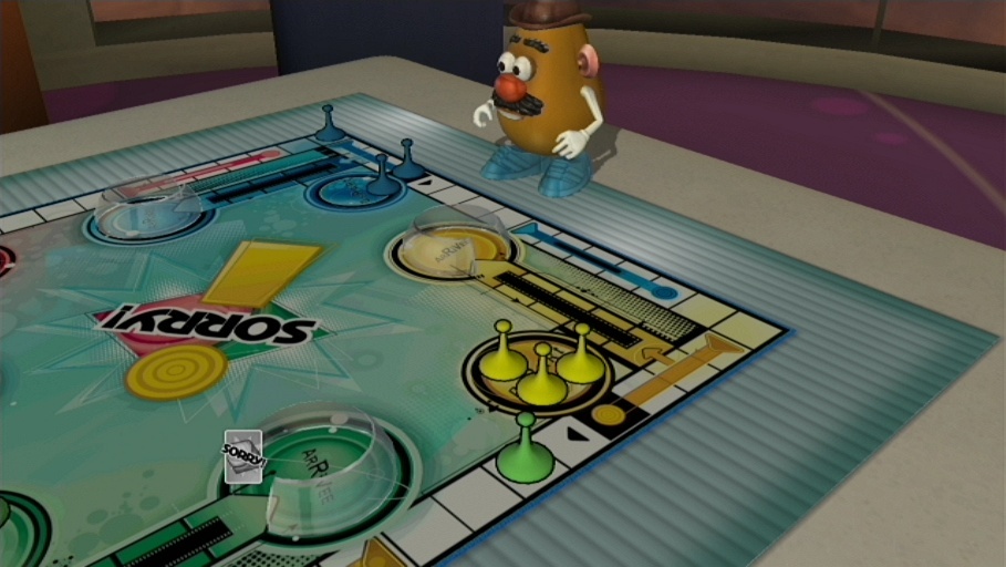 With Mr. Potato Head as your guide, players are led through a very simple player creation process that allows you to pick a name and an avatar to represent you through gameplay. Afterwards, it’s onto the fun as you are taken to your virtual homestead, complete with a modern living room featuring a massive coffee table that serves as your playing surface, a large trophy wall, and a mechanical set of cabinets that store all of your gaming goodies.