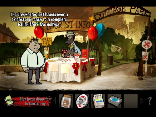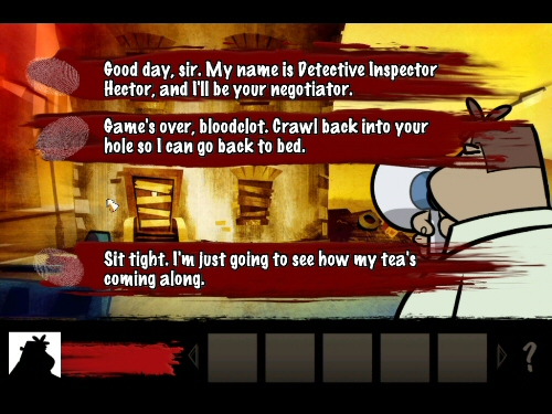 A simple point-and-click adventure is sometimes just the right thing to break the pace of furious gaming, and Hector: Badge of Carnage certainly did that for me. Episode 1, subtitled We Negotiate With Terrorists, places Detective Inspector Hector against a hostage situation in Clappers Wreake. However, that’s not exactly how our adventure begins…