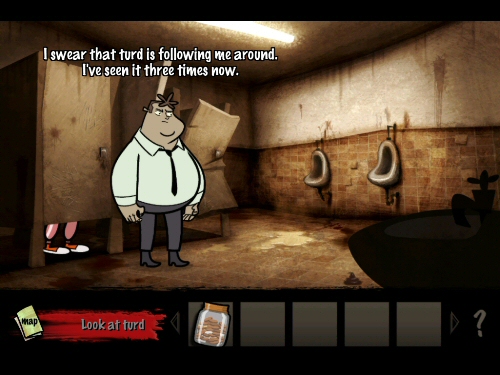 We wake up in a locked cell. Hector has no pants on and must inspect his surroundings to discover things that may help him get out. Soon enough, we find ourselves attempting to fish out a paper clip from a very dirty toilet, using a condom and a string. Definitely not your cartoony witty adventure for the whole family, Hector: Badge of Carnage is just the exact opposite, dealing with mature subject matters such as crime, drugs, porn, prostitutes, and the dialogs are on a whole other level of swearing. And it is downright hilarious!