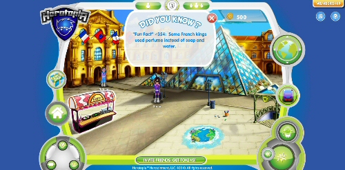 The world is divided into continents, which you are free to explore at will: Paris, the North Pole, Beijing, New York and Herotopia Island are the current available locations. Everywhere you go you can interact with certain objects on the screen and reveal something fun, like a game or a piece of trivia about the respective country. Famous landmarks such as the Eiffel Tower, the Statue of Liberty and the Great Wall of China are featured in this colourful cartoony 2D world.