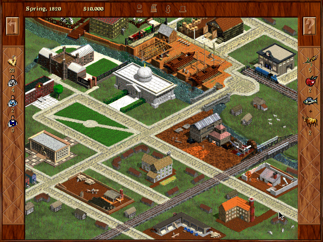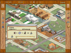 To manage your resources you need a capital city, which in the easier levels is already made for you. Smaller towns are not useful at the beginning of the game, until much later when they start producing some raw materials like steel or lumber. Eventually you will have enough diplomatic power that you will be able to prospect lands in other minor countries, who will then allow you to purchase land to develop for them. This increases good relations between countries. Sometimes you will be notified that a new invention has been made, like the cotton gin for example. These inventions and advancements in technology will allow you to better gather resources, but can be costly.