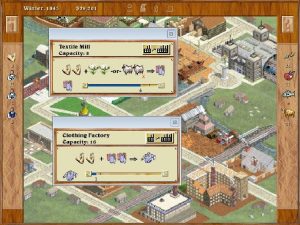 In the Industry screen you can see what is going on in your town. You have different buildings (with interesting sound effects) that produce from the raw materials you transport in. You have a certain amount of manpower, which you can buy more of during your turn. There seems to be a good balance between what you are using and what you are producing. You need to keep an eye on these things to make sure you have enough raw materials coming in to satisfy the demand. It is very difficult to really understand this balance until you have played the game many many times.