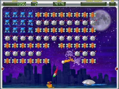 The date is 2345 and the cutest teensy little aliens you ever saw are invading the Earth, yes they are. In an obviously unprepared and archaic display of tactics they’re descending on you in a block pattern. It is your mission to destroy them all and keep them from touching the ground. Sound easy? They have strategies up their darling little sleeves.