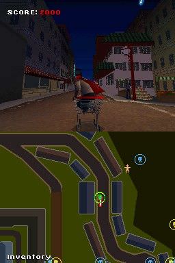 The presentation of Jackass on the DS is quite different. Here, you play as yourself, or rather, the character you create. You can pick male or female, choose from a few different hair styles and colors, and pick some clothes before you go out into the world as “Little Muffin” (no, you can’t pick your name) to star in your own crazy stunts.