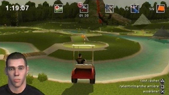 Golf Rally was a lot of fun too. You drive around the mini-golf course, running over the course employees, destroying everything you can, launching whoever is doing the stunt out of the cart and into the huts, causing as many injuries as possible. (Hint: it works fairly well when you drive up the ramp near the gorilla and bail out while still in the air!)