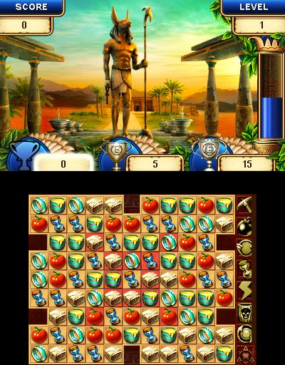 After visiting and restoring the Roman and Greek civilizations, for the second time in the series we are taken to Egypt. Once again, our basic task is to create combinations of three or more of the same kind of icon by swapping two adjacent pieces.