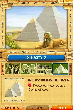 After each level, you can use your food, gold, and building materials to construct various portions of the town, starting with a simple settlement and a well, and eventually moving on to bigger and grander structures (obelisks, palaces, famous landmarks, etc.). There are 100 levels available in all, with later buildings requiring appropriately larger amount of resources to build, so you’ll need all of those levels if you want to build everything.