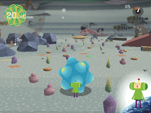 A big plus is the 2- player mode. Side by side, two players can compete to see who rolls the biggest katamari. And if one gets much bigger than the other, beware, the bigger katamari can roll up the smaller one. Unfortunately, the arena is kinda small.