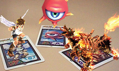 There are some interesting features accompanying the story though. Completing stages sometimes reveals something new in the Treasure Hunt grid, depending on the conditions you have met, such as destroying a certain number of enemies on a given stage. Finding eggs in a stage or purchasing them with Play Coins a (currency earned by walking around with the 3DS in sleep mode) will let you play Idol Toss, where you place an egg in the tray and throw it, revealing an idol. Fusing weapons will allow you to customize and improve Pit’s fighting abilities by creating new weapons using existing ones. There is another extra that involves the AR Idol Cards included with the game (others sold separately), but I thought it would be more interesting than scanning them and watch them come to life, or placing two facing each other and watch them fight. I figured they might have unlocked playable characters or bonus weapons… or something.