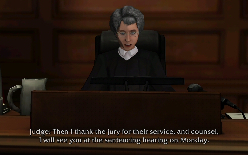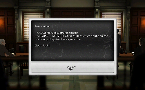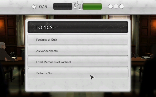 The second part of the game (so to speak) is the trial. Things are a bit different here, even though you still ask questions about relevant topics. There are still stars to be earned and red herrings to be found, and there is still that “3 strike” mechanic in place. But now you have to worry about tipping the scales of justice. You earn points for asking the right questions and objecting at the right time. Objections need to be justified so that they are sustained, so when you object you will have to choose the appropriate justification from the options. You don’t always have to object when given the chance, though.