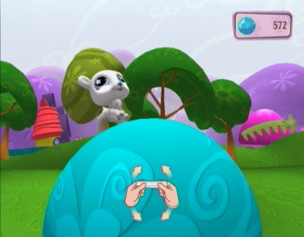 This Wii version of the title starts and plays as all of the others do. You begin by traveling to Pet Plaza, the center hub for your own Littlest Pet Shop, where you are greeted by three pets. From there you have access to the Meow Market, where you can purchase accessories for your pets (hats, sunglasses, dresses, and dozens of other “wearable” items), along with play-sets and even more pets.