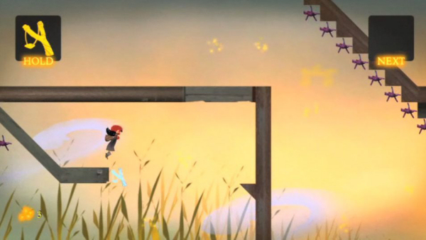Unfortunately, items are added to the landscape in a fashion similar to Tetris (for a lack of a more widely known example), one piece at a time, with a small “Next” window being placed in the top right corner of the screen, allowing you to plan just a bit before making every move. You are also allowed to store a single piece in the top left corner, which can be swapped for the active piece with the press of a button. This is helpful in later levels, when the growing assortment of items at your disposal causes a lack of stairs or boards (the two most useful items in the game) in that you can, with enough forethought, always have one at the ready.