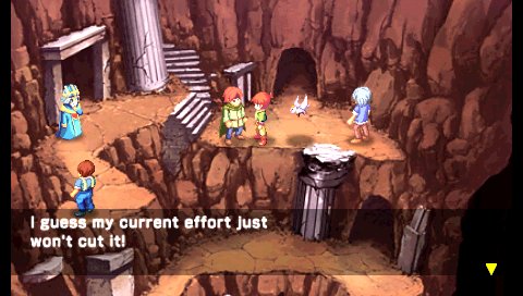 I was so excited to revisit the characters and events in Lunar, and my first 15 minutes of the game were already composed of disappointment. Some sites claim that fans of the series will (note: “will”, not “should” or might”) appreciate the extended scenes… Personally, when the four heroes of legend are presented as clumsy while battling a monster that is, at best, ridiculous-looking… No, I’m sorry but I didn’t appreciate it!