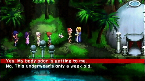 The dungeon areas are considerably smaller now. I remember the first time I left Burg, it took me quite a while to be able to cross Ghoto Woods. Not to mention I always powered up until fighting the monsters in a given area was easily done through Auto-Battle. And Auto-Battle used to suck! It was so unpredictable and unreliable that you couldn’t even fully trust it during a normal monster encounter due to the AI making silly mistakes and getting some characters killed. Now, you can even use it during boss fights.