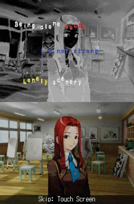 Disappointing “gameplay,” and I use that term lightly, aside, the one thing that Lux-Pain does have going for it is its overall graphical style, that being one of traditional anime stylings, complete with exaggerated facial and bodily features and hair colors that you can normally only find in a bottle. Likewise, the soundtrack is quite good, comprised of dark and gloomy music that is befitting of the game’s focus on emotions, along with voice acting on a large chunk of the dialogue within the game.