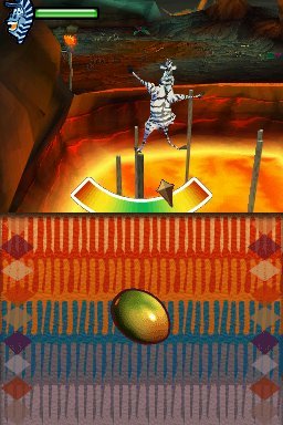 Madagascar: Escape 2 Africa is essentially a platform game “on tracks” with some mini-games in between. You control the several characters one at a time by using the buttons and D-pad, hopping, jumping and fighting your way through a given stage. The movement is limited, since the camera is fixed and it seems more like the stage scrolls by you than you move through it. You have no control over the camera angles either, which makes parts of the game fairly frustrating. For example, there were a few occasions where I had to backtrack to reach a certain platform I had missed, only to find myself trying to jump into the unknown, because I couldn’t see it.
