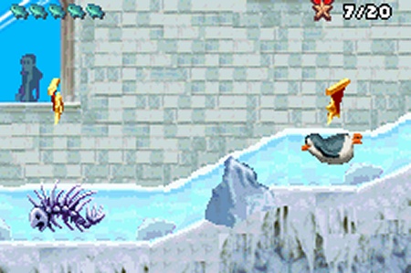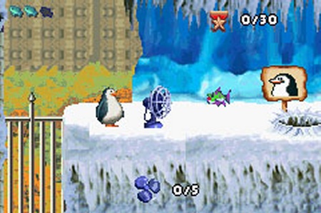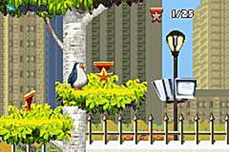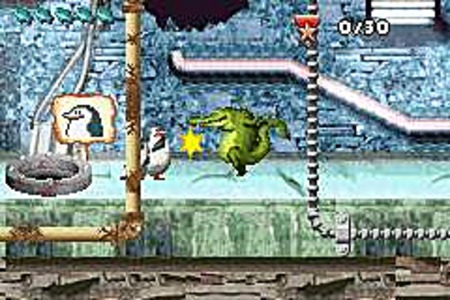 Of course, what sets Operation Penguin apart from the plethora of side-scrolling adventure offerings currently available on the GBA is its humorous mocking of the overly-serious penguins’ ridiculous undertaking to escape to Antarctica. The irony, for example, of the MacArthur-esque Skipper training his fellow penguin to sniper crawl in full view of zoo patrons who press their noses against cage glass or take pictures is pretty hilarious. The pretentious James Bond-themed espionage background music further parodies the birds’ pathetic martial objective.