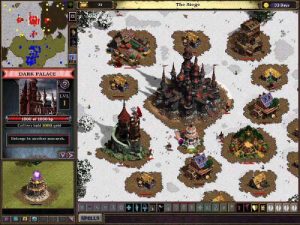 Other buildings that contain units may help with some combat, but mostly have other uses. Gnomes are available with a Level 1 castle. Basically they are a bunch of little dorks that run around and help peasants with construction, and are not very useful in combat. Also, once you build a gnome hovel, more just start popping up randomly, which can be inconvenient if you were meaning to build in a particular spot. Dwarves and Elves are available starting with a Level 2 castle. Dwarves are slow-moving creatures that assist with building construction, and also are not so bad with combat. Their guild building also has a built-in ballista that shoots at monsters. Having a dwarf’s guild allows you to also build mini-ballistas around your kingdom to aid in self-defense. Elves are quick and fleet-footed and attack with a bow and arrow. However they also generate gambling halls and elven lounges where your units may be more interested in visiting rather than fighting.
