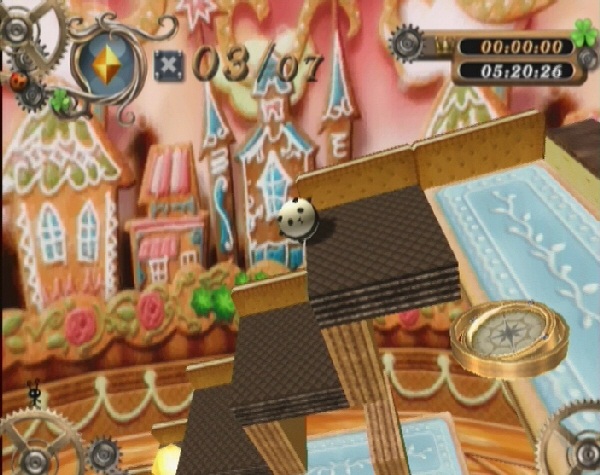 For those unfamiliar with Marble Madness, Super Monkey Ball would also be an adequate comparison to the world of Marble Saga: Kororinpa. Players guide marbles of varying sizes and designs (anywhere from a small cat or ladybug to more eccentric items like UFO’s and hedgehogs) through maze-like levels, collecting gems along the way, to eventually reach a level-ending vortex.