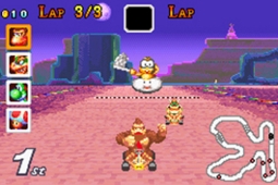 The graphics seem similar, if not a little more primitive than Mario Kart, cute and colorful. But even if limited in options, in the end Mario Kart Super Circuit game produces enough fun to last for at least the hour commutes.