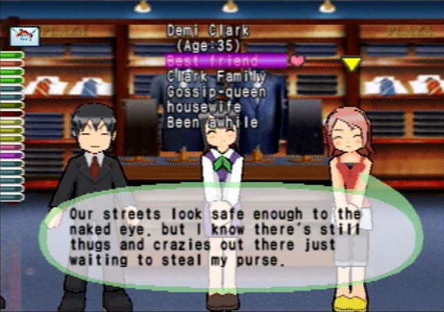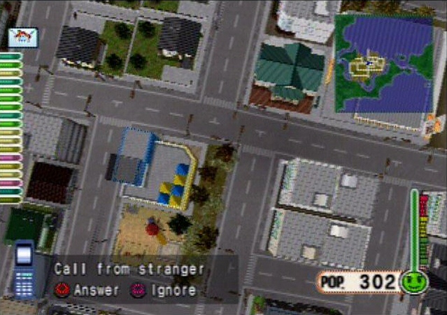 But the gameplay isn’t all bad. Once you have built up a huge supply of friends in the “phone book”, you will have a much easier time building towns, since you can place the obvious necessities in town before ever tackling the main goal at hand. Back to my square town example, a great plan would be to build a police station, restaurant, hospital and grocery store on each of the four corners (for a total of 16 buildings) so that you can sit back for a while, while citizens think of new things to complain about.