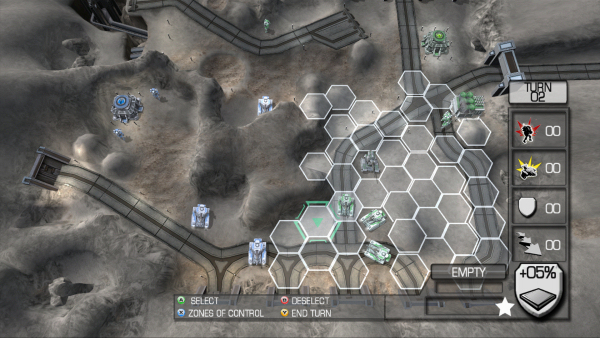 And the hits keep coming. The graphics are incredibly bland, thanks to the gray setting of the moon and a lack of intricate detail, with blue and green troops being the only real color on the board. The music is repetitive and inconsequential. Most of the sound effects seem like afterthoughts and come in the form of a small “poof” when a unit is destroyed or a random assortment of gunfire during combat.