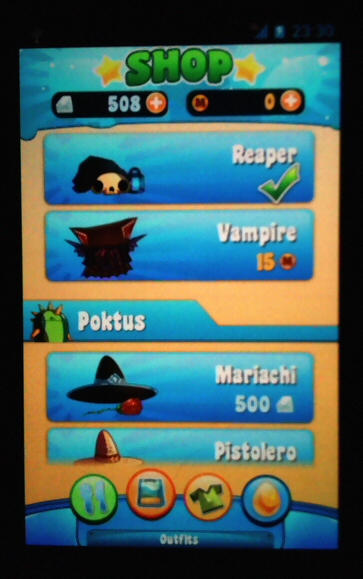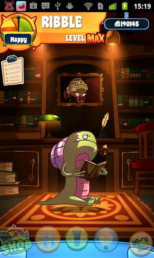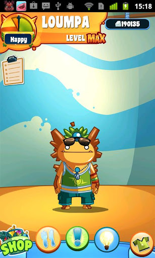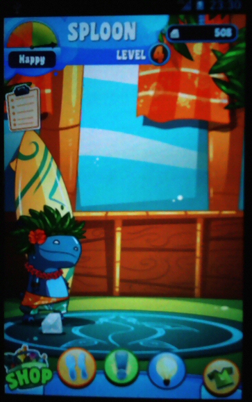 As they level, you unlock new things in the shop, such as outfits, themed rooms and toys. I like this little added bonus, since now my Sploon hangs out in a surfer themed room, wearing a Hawaiian party leis and grass skirt, playing his ukulele when he plays. On the other hand, my Krinker wears a Grim Reaper outfit, Kumbo pretends to be a boxer, and Poktus is (from what I gathered) a cactus Mariachi. Too cute, and so funny to see them play, especially when you tickle them with your finger. They actually giggle or snort!