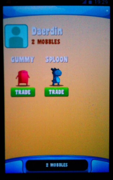 I thought this was going to get pretty boring fast, but then I browsed the menus to find a very interesting feature. Using my phone’s GPS, Mobbles was tracking my location on Google maps and showing me where other pets where hanging out. If I got close enough to any given pet on their real world location, I would have a chance at capturing it. I got lucky one night and captured one right at home, and on another occasion found a fourth while walking to the doctor’s office. Aside from the Catch a Mobble function, you can also trade Mobbles with friends by signing in with Facebook or creating a user account and adding some friends. And in the Mobble Shop you can browse and purchase basic supplies and toys for your pets. And also Mobble eggs, if you don’t want to bother catching them.