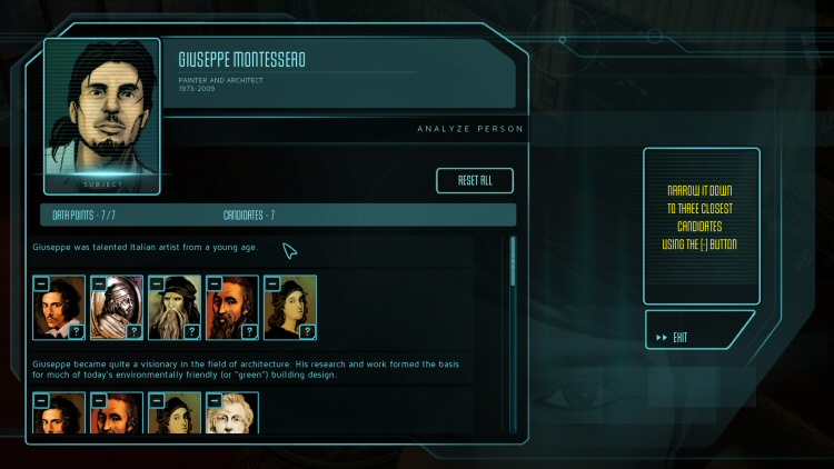 If the story were more compelling, the fact that the puzzles and mysteries in the game are very basic would be less of an issue. I won’t lie, I’m personally always getting stuck on at least a couple puzzles in point-and-click adventure games, and this was the first time I didn’t even scratch my head for a game. Much of the player’s time will be spent doing fetch missions, picking up items that will be clearly used later (a key, a passport, etc), then going back later if you couldn’t or didn’t pick something up before. The game holds typical point-and-click mechanics, with an added feature of profiling different people throughout the game. The profiling attempts to match people to others in history, and feels rudimentary, even sometimes just plain bizarre (a woman wearing stylish clothing is described as clearly being sexually frustrated, with no indication as to why we have come to that conclusion).
