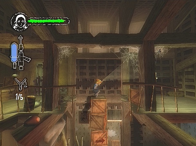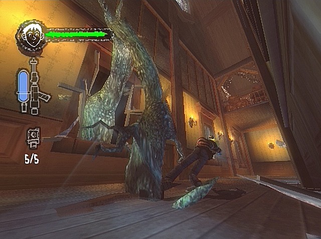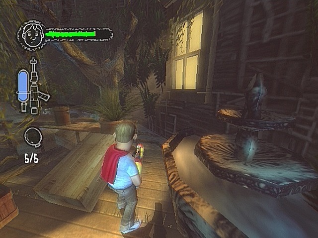 At first glimpse, Monster House does a wonderful job of recreating the look and feel of its movie counterpart. You follow the three heroes, Jenny, DJ and Chowder, after they are trapped inside the haunted house, using kid-friendly weapons like water balloons, squirt guns, and good old fashioned ingenuity.