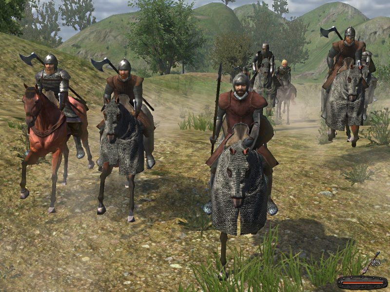 There are lots of ways to make it as a soldier of fortune in Mount & Blade: ingratiate yourself to one of the monarchs of the Big Five kingdoms by running various small (and at times tedious) errands and eventually swear allegiance to them, becoming a vassal lord or lady (who then takes on larger assignments), sign mercenary contracts with whatever kingdoms strike your fancy, looting and pillaging their political enemies in exchange for weekly pay (and, you know, the encouragement to loot and pillage being payment in itself), or operating as a pure independent: hunting down other, weaker bands of neutral parties (such as the many various roving groups of bandits, pirates, etc.) and preying upon merchant caravans for their sweet, sweet booty, whilst dodging the ire of the local lords.