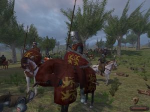 While the scenery is quite pretty and rendered atmospherically, most of Mount & Blade’s graphics actually look pretty dated- a friend compared individual character figures to “Morrowind heads on LEGO men”. Body proportions are doughy and a little silly-looking when not contoured by the right armour meshes. Despite the diverse (performance-wise) variety of horses and their enormous importance to the game (you know, going by the title), horses are relatively bland and homogeneous in their appearance – there’s a model of a chestnut horse, a paint horse, a sable horse, and a horse covered with chain barding whose features you can’t really make out but is probably one of the previous varieties with an armour mesh over it, and that’s about all. Having played through Mount & Blade with a very cavalry-centric PC, I would have liked to get as personally attached to my PC’s horse as to the PC herself- at least a little uniqueness in markings or the opportunity to name the individual beast. Once you’ve seen enough of them, horses in Mount & Blade begin to take on a very anonymous, ‘vehicle with legs’ quality, which is a terrible shame considering the very intimate role these animals played in the warfare of the period.