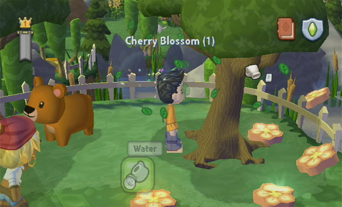 For example, you can shake trees to gather fruit and whatever else that grows on them by pressing B and shaking the Wii-mote. You can pick plants by pressing B and flicking the Wii-mote up. You also do this gesture when fishing, after the bobber sinks. You can chop trees to get wood by swinging the Wii-mote as an axe, and if you do destroy the tree you can plant another in its place, water it and watch it grow back.