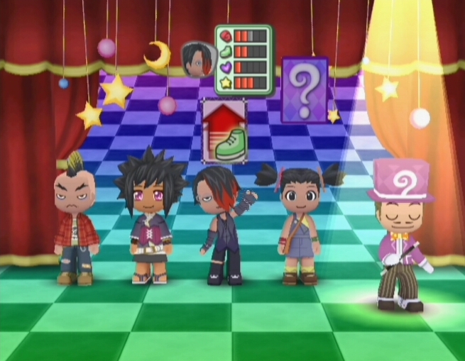 All MySims have stats, which are related to the mini-games: strength, luck, speed and stamina. Depending on the type of mini-game, a particular stat (or two) will be highlighted. For better chances of winning, pick the member of your team with the highest of this particular attribute. Sometimes in the middle of a festival you get to draw a card, which can have a special effect to increase one of your stats. As you play the games, the MySims stats will go down.