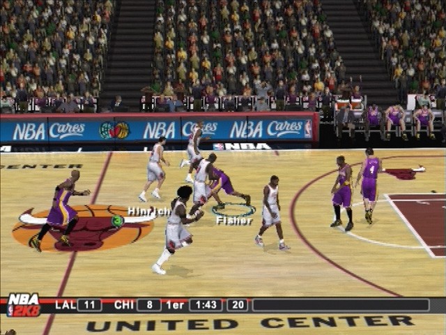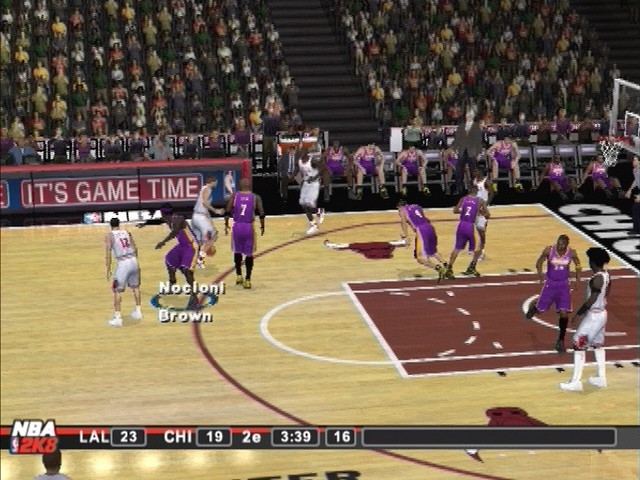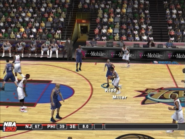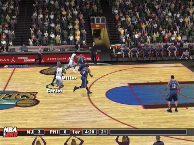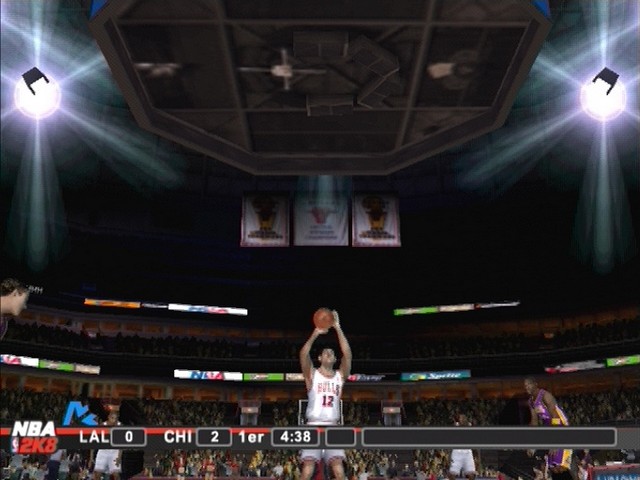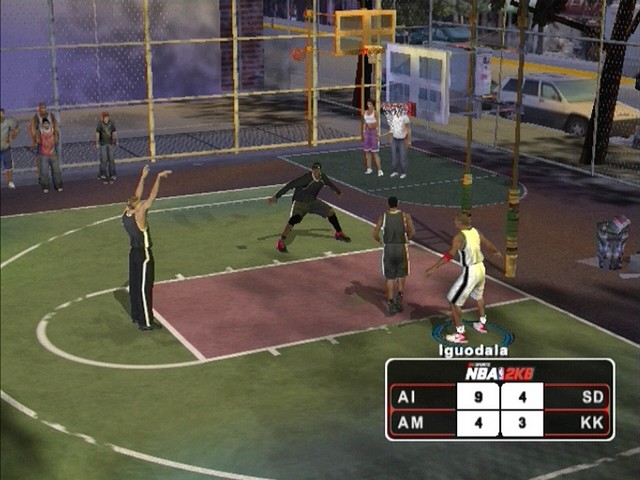 Some of the players skin tones look a little weird, due to the addition of shiny, presumably sweat covered patches, and there is a bit of an issue with clipping, especially in the arms, when three or four players are standing very close together, but other than that, there’s not much to complain about. The fans in the crowd actually move and cheer the way real people do, the basketball looks and behaves the way it should when being dribbled, and the wax on the floor really shines. All in all, the graphics in the game are pretty impressive, even on a PS2.