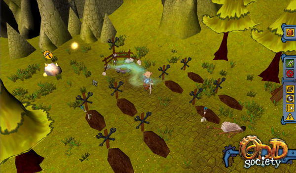 The game plays solely as a point-and-click, with no support for keyboard-based movement. A right click of the mouse rotates the camera for a better view of ODD Boy, who is but a small character on an expansive landscape filled with a few varieties of interactive objects.