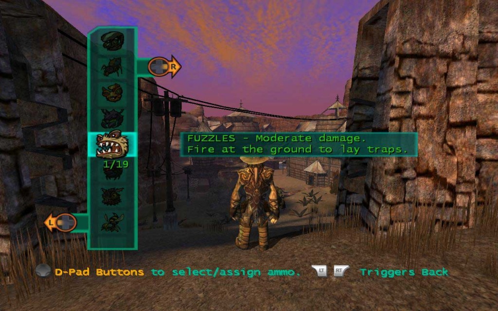 Each of these little creatures has its own special “power”. For example, the chipmunk lures enemies to it and bollamites (a kind of spider) are used to paralyze your enemies for a short period of time. Of course, to have these types of ammo available, you will have to hunt them first (aka, knock the little animals out to capture them). Later in the game you can buy breeding bags which allows you to increase your supply and not spend time hunting. You can have two types of ammo loaded at any time, so try out different combinations to see what works best for you.