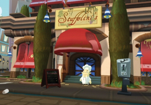 There are a few mini-games around as well. Some happen in the kitchen, one if you set the station on fire (you must extinguish the fires) and another is a rat invasion (you flick them off the counter). A health inspector will come by to check on how well you clean the dishes, so scrub as fast and as well as you can. Outside, you might see the paper boy fall off his bike, so you can help him pick up the newspapers as the truck drops them off. And at the spice vendor, you can play a chopping game for some extra coins.