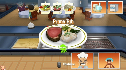With coins and tips being earned for each dish served, you’ll be able to purchase additional options for your menu, spices to kick dishes up a notch (based on individual customer requests) and can even hire sous chefs to help you in the kitchen. Thankfully, these helpers will take care of any task you throw their way, allowing you to multitask on two or more dishes at once (and therefore earn more money in each level), or simply save your wrists from the more straining actions (like carving meat, which requires a lengthy sawing motion).