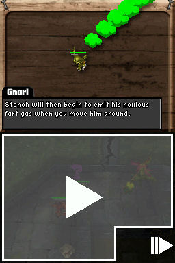 By only utilizing the stylus for the controls, the game captures the feeling of allowing you, as the Overlord, to control your minions via your very thoughts, as you remain an invisible presence in the game. However, actually controlling your minions is a very two-sided experience.