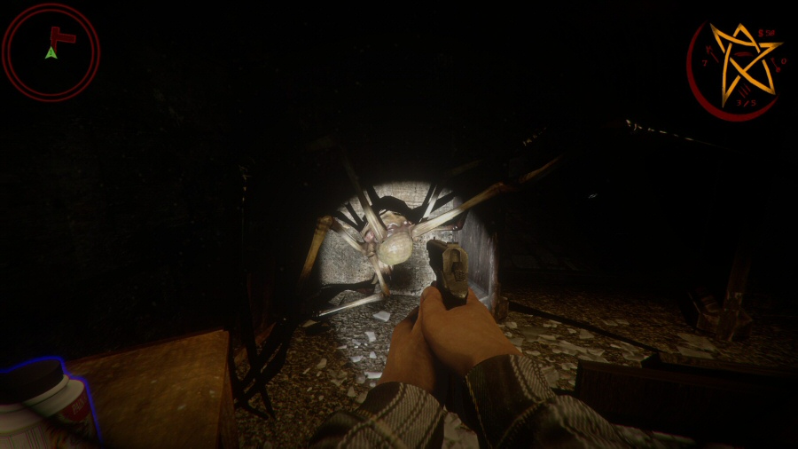 Every noise would make me turn around to look in every direction, and the game is pretty good at trying to scare you, even if all you did was step on a glass bottle and shattered it. It’s all about setting the mood, and Phantasmal does it well. It’s not overly scary, it doesn’t rely on jump scares (unless you count spiders falling out of nowhere making me leap off my chair), but it is super creepy and conveys a true feeling of uneasiness and imminent danger throughout, particularly when resources are scarce.